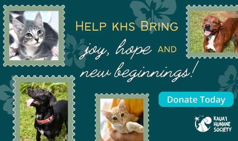 If you’ve adopted a pet from KHS in the past year (anytime after 2020), please participate in this brief survey. Your participation will help us improve processes and will help more pets like yours get adopted! Mahalo!