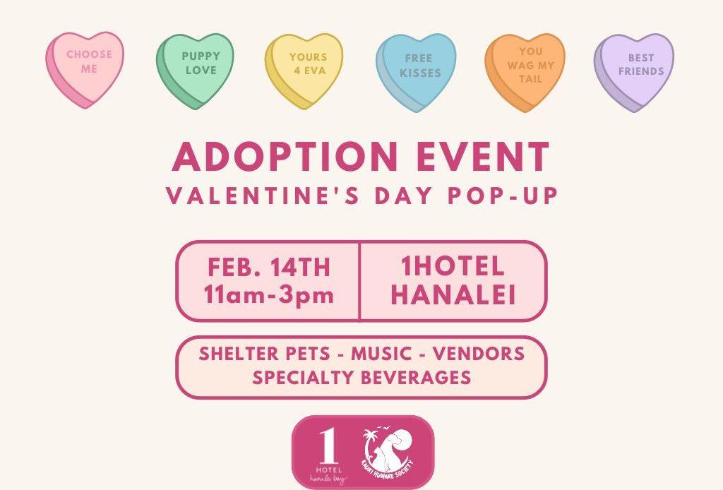 Join the Kauaʻi Humane Society at the 1Hotel Hanalei Bay on Saturday, February 14th from 11 AM to 3 PM for a heart-warming afternoon featuring adoptable shelter dogs, live music, delicious food, and local Kauaʻi vendors. The beautiful, spacious venue makes it the perfect place to stroll, relax, and maybe even meet your fur-ever Valentine.